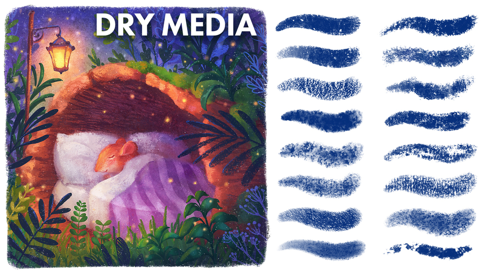 This set of custom brushes was created with children's book illustrators in mind and has everything you need to give an authentic textured look to your digital artworks and storybook illustrations!